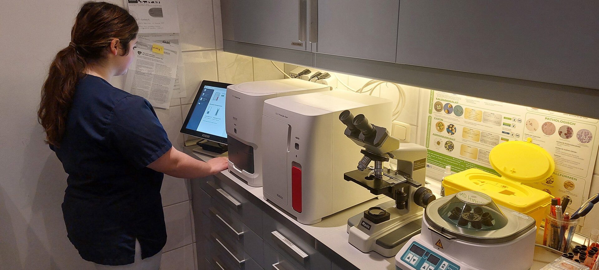 Die labordiagnostischen Untersuchungen (Blut, Urin, Kot, Mikrobiologie, Zytologie, u.a.) werden entweder in unserem Inhouse-Labor, oder in renommierten Laboren (IDEXX, Laboklin) durchgeführt.