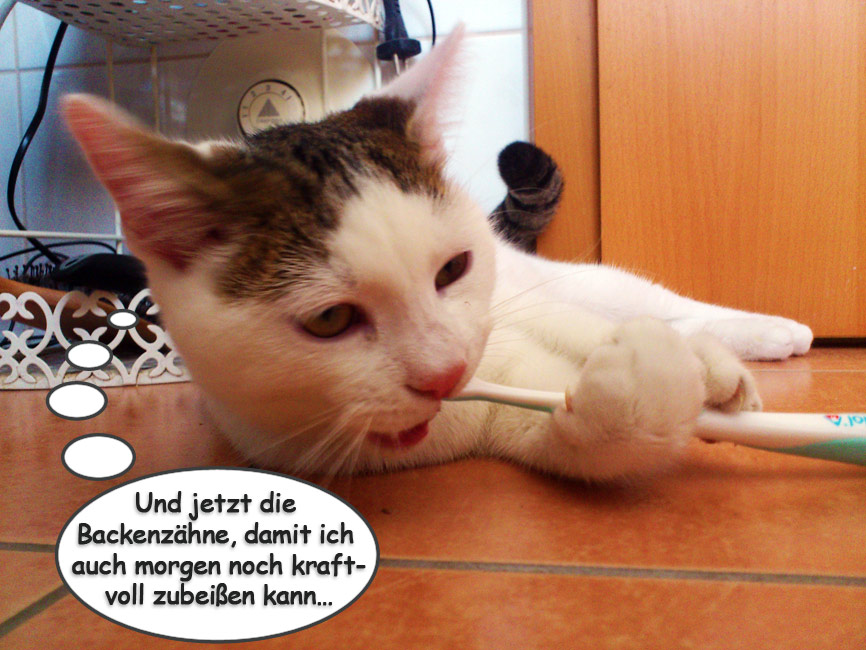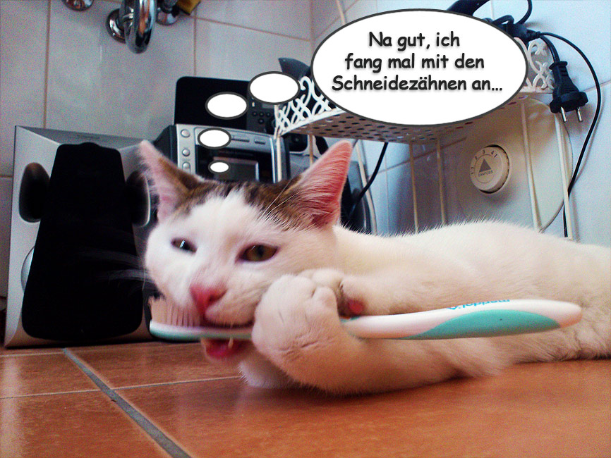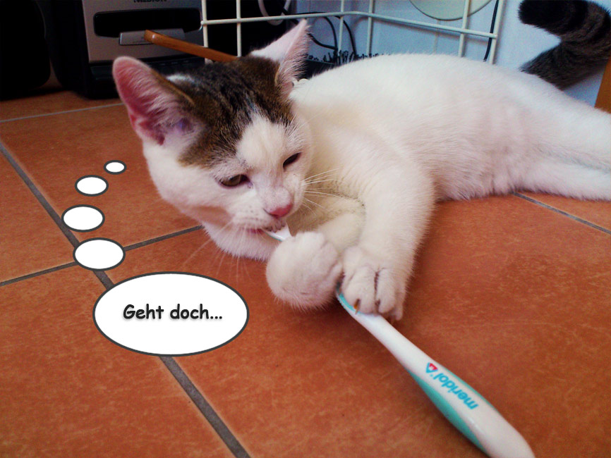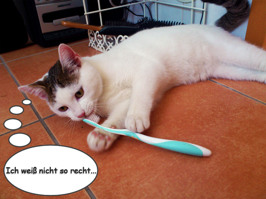 Gesunde Zähne sind die Grundlage für die allgemeine Gesundheit Ihrer Katze. Leider lassen sich nur wenige Katzen – wie der hier gezeigte Kater Undo – zum täglichen Zähneputzen animieren.