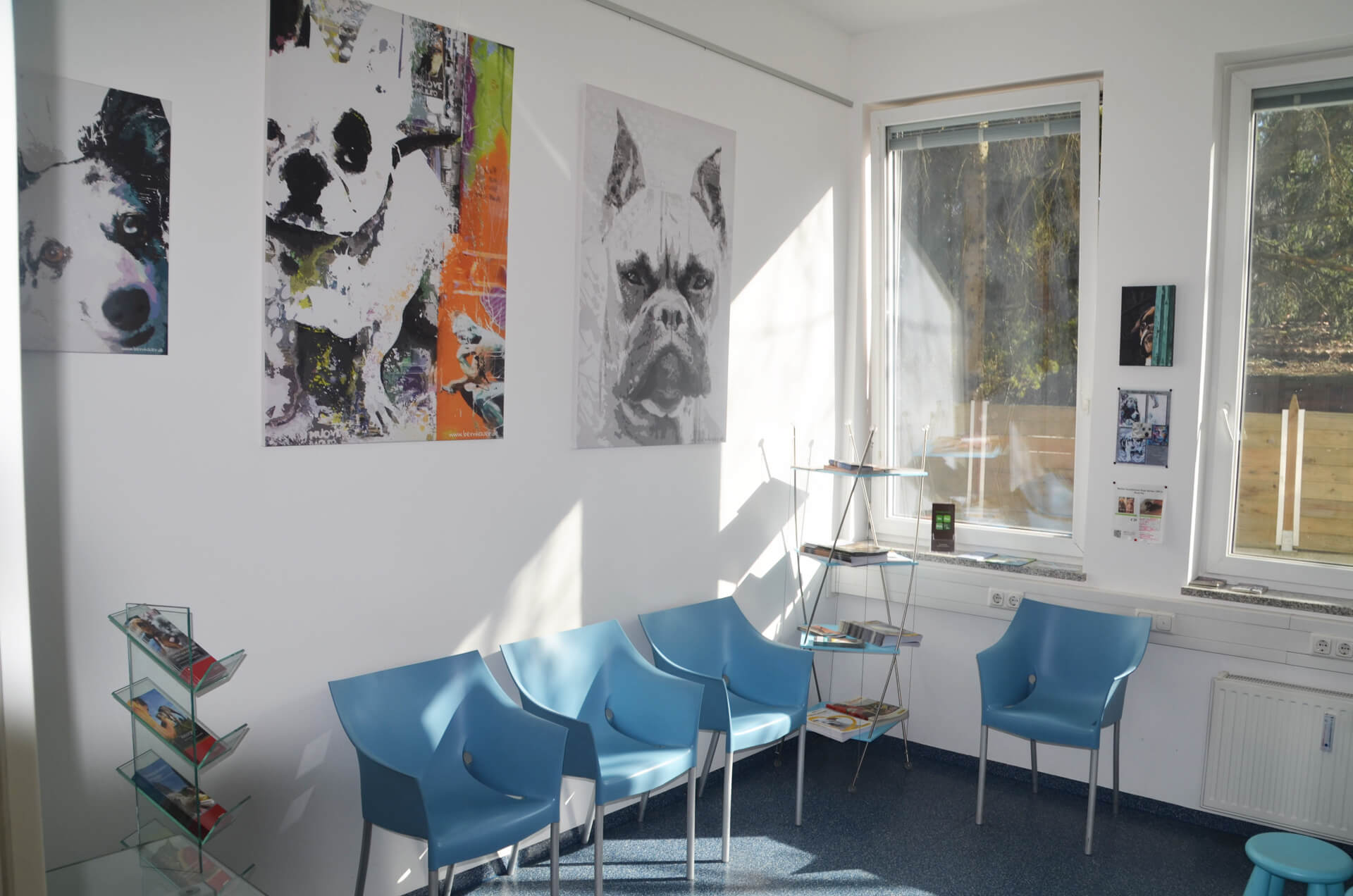 Please request an appointment by phone to prevent long waits in our redesigned waiting area decorated with beautiful portraits of animals by artist and designer Liane Bernhauer (www.bernhauer.de).